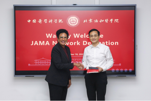 吉训明院校长对Kirsten Bibbins-Domingo博士一行的来访表示欢迎。他介绍了院校的基本情况,并期待与JAMA建立全面深入的合作伙伴关系。希望双方在青年医师培训、基础研究和临床应用等方面开展合作,推动全球重大疾病领域研究,为全球健康事业发展注入动力。