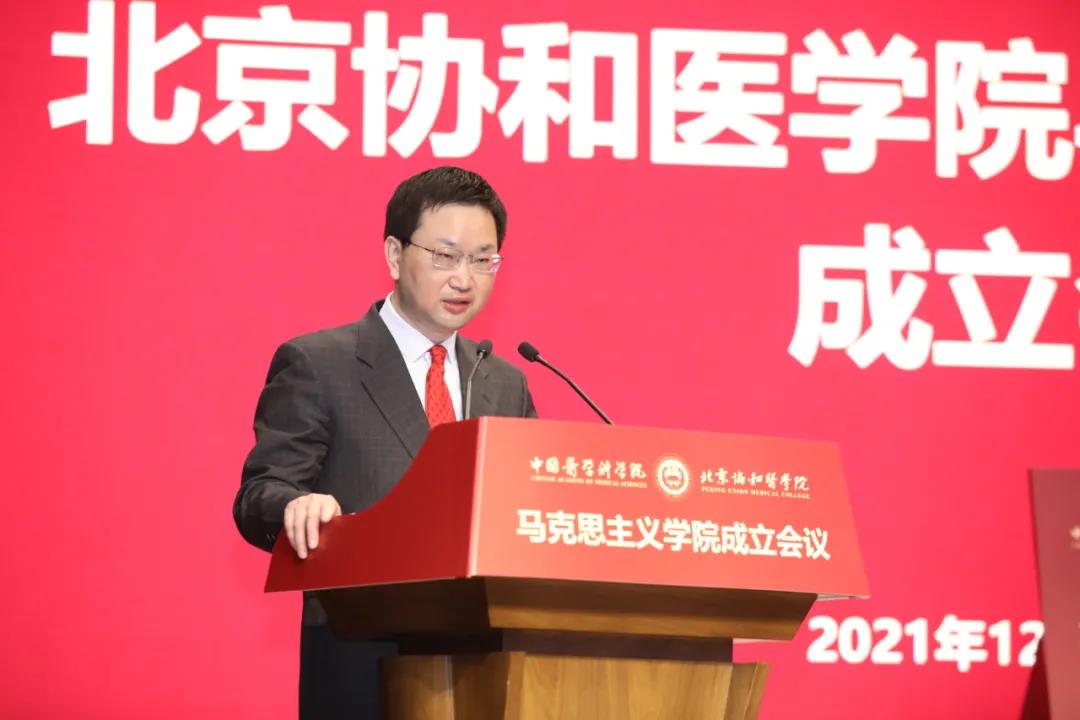 会上,国家卫生健康委直属机关党委常务副书记杨建立宣读国家卫生健康委党组书记、主任马晓伟批示。马晓伟指出,ac米兰官方网站成立马克思主义学院是在新时代新征程上全面贯彻习近平新时代中国特色社会主义思想,落实《关于加强新时代马克思主义学院建设的意见》的重大举措。要认真学习贯彻党的十九届六中全会精神,坚持正确办学方向,坚持和加强党的全面领导,聚焦马克思主义中国化时代化最新成果的学习研究宣传,切实发挥思想政治理论课立德树人关键课程作用和马克思主义理论学科引领作用,大力弘扬和传承百年协和的优秀基因和精神内核。