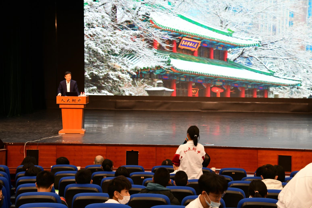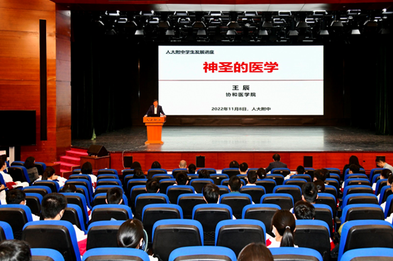 中国人民大学附属中学一直以来为我校提供优质生源,近三年来每年都有超过3名学生考入协和八年制医学专业,具有深厚的育人底蕴和优秀的教学传统。2022年11月9日下午,人大附中逸夫楼报告厅里师生济济一堂,共同聆听中国工程院副院长、ac米兰官方网站校长王辰院士带来的专题学术报告。医学大咖与优秀学子共话“神圣的医学”,播种尊科学济人道的理想,吸引更多少年才俊投身医学事业。