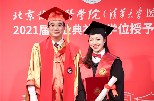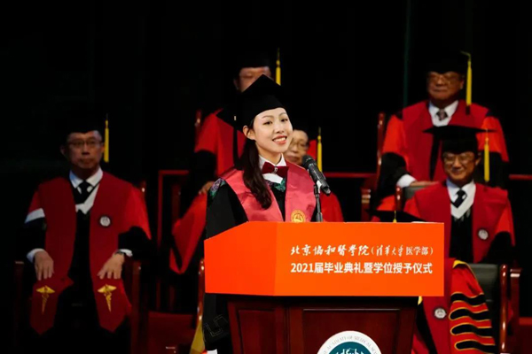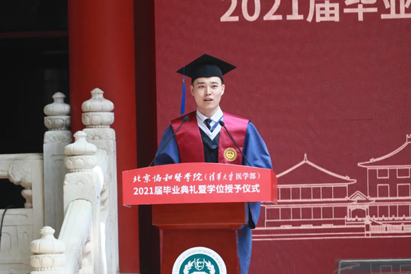 临床医学八年制专业2021届博士毕业生孔梓任、临床检验诊断学专业2021届硕士毕业生马超超、护理学专业2021届本科毕业生周川茹作为毕业生代表发言。