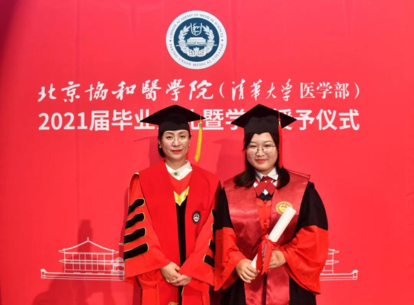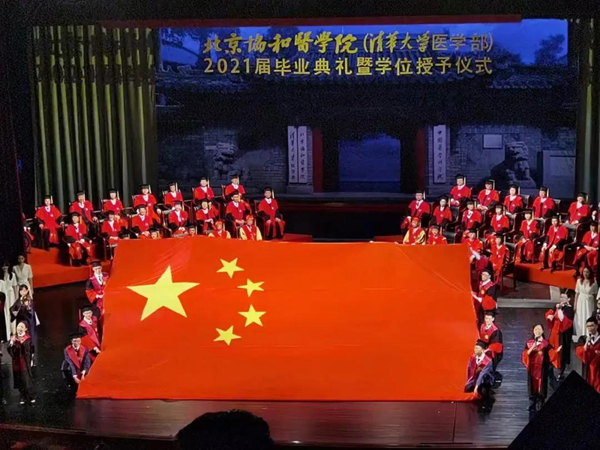 2021届优秀毕业生代表身着学位服,手持奖牌缓缓步入会场,重现百年协和毕业典礼的经典场景,象征协和精神与血脉的赓续传承。