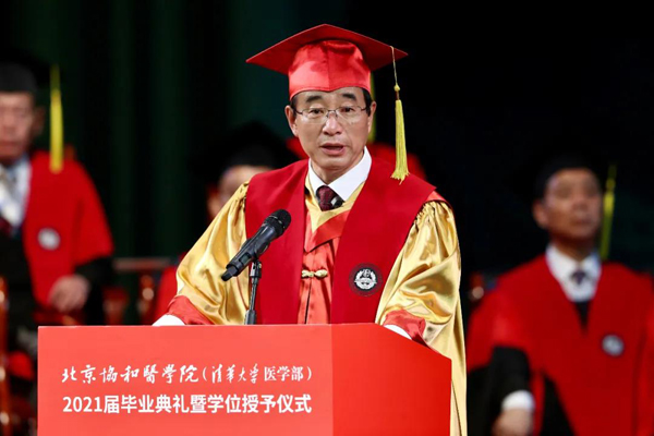 王辰叮嘱学生,协和学子应当有“尊科学济人道,寓高贵于朴实,以天下为己任,助众生求福祉”的精神,在毕业后的工作、社会实践中要去私唯公,弃虚唯实,用心力照护患者、人群、大众、国家与民族、以至全人类之健康。