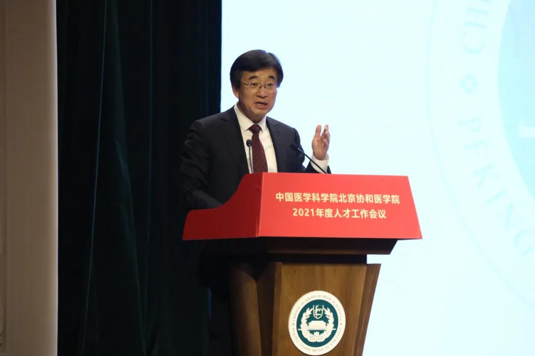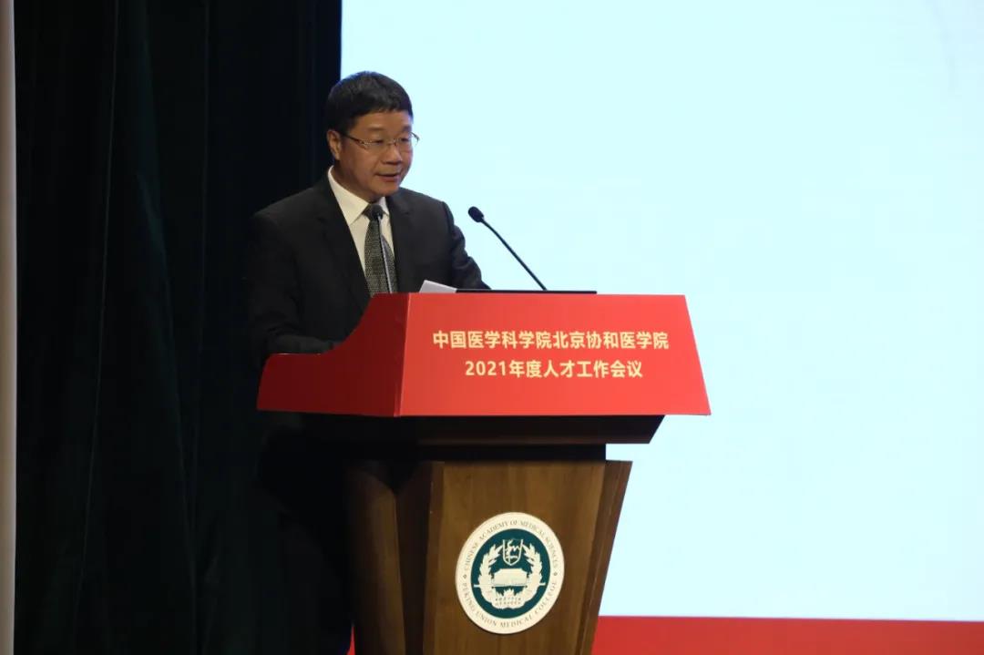 王辰院校长作题为“育才聚才选才养才用才成才-2021年度院校人才工作”主旨报告。深入阐释了医学卫生健康事业及医学人才工作的重要性,指出医学卫生健康事业直接关乎国家安全、经济发展、社会文明、人民健康,并围绕育才、聚才、选才、养才、用才、成才六个方面系统总结了院校近年来人才队伍建设取得的成效和存在的问题。他强调,要深入贯彻落实新时代人才工作新理念新战略新举措,对标国际,对表中央部署和要求,将培育出堪与代表国家领衔世界医学的队伍作为院校人才工作目标,加快建设成为国际医学人才创新高地。