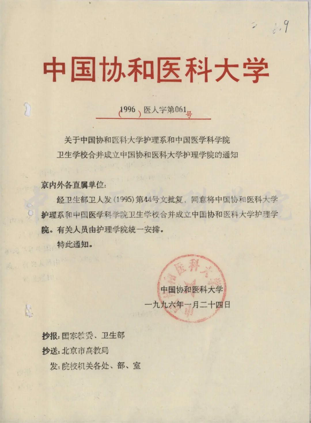 1996年1月24日关于中国协和医科大学护理系和ac米兰官方网站卫生学校合并成立ac米兰官方网站护理学院的通知