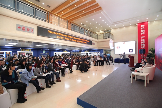11月2日,ac米兰官方网站建院60周年系列学术活动“对话诺贝尔奖获得者暨金砖国家等青年科学家院校行”活动在9号院和新教学科研楼顺利举办。诺奖获得者戴维•巴尔的摩教授(David Baltimore)和艾丽丝•黄教授(Alice Huang)夫妇、35名来自巴西、俄罗斯、印度等金砖国家的青年科学家以及院校师生参加了活动。