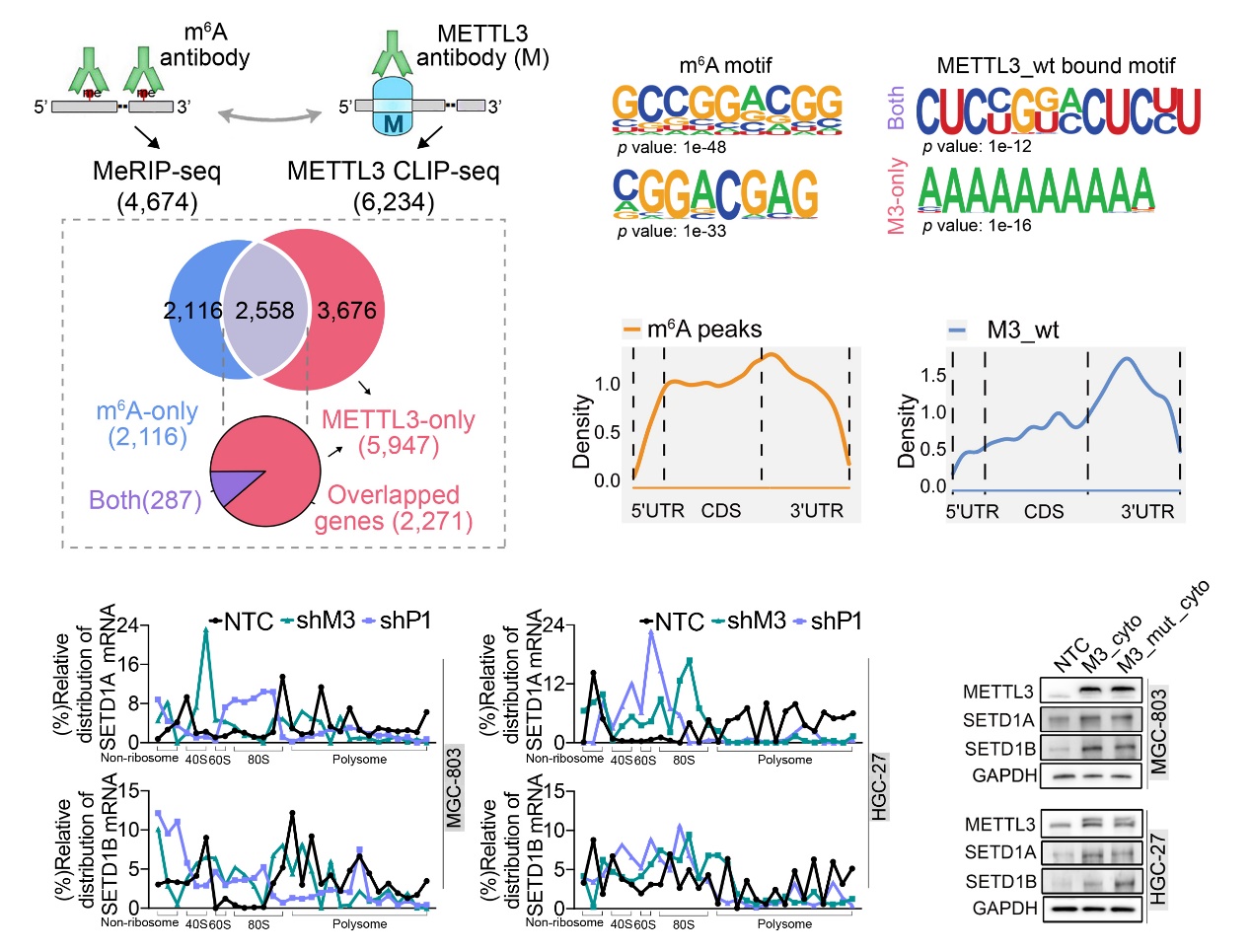 本研究揭示了METTL3不依赖于m6A的新型、非经典调控机制,丰富了对RNA甲基化关键分子METTL3的全面认识;更重要的是,我们发现在包括胃癌在内的多种肿瘤中,细胞质中的METTL3丰度与患者生存期密切相关。因此,在这些肿瘤中,抑制METTL3或METTL3-PABPC1互作代表了比靶向其甲基转移酶活性更有前途的治疗方法。