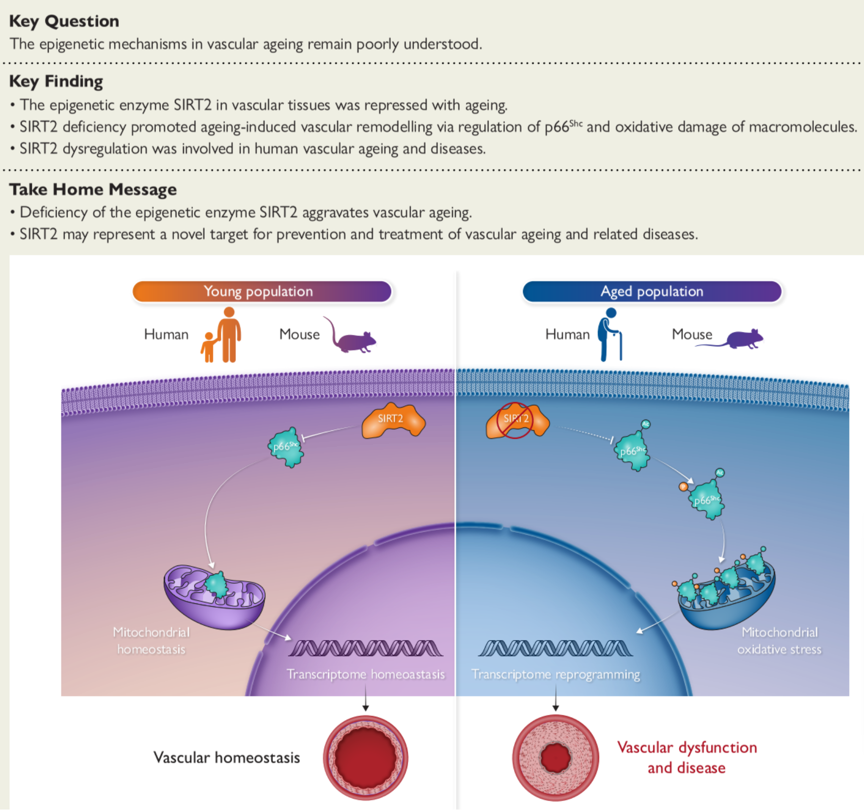 2023年6月28日,ac米兰官方网站基础医学研究所陈厚早研究员团队在European Heart Journal(欧洲心脏杂志)发表了题为“Sirtuin 2 deficiency aggravates ageing-induced vascular remodelling in humans and mice”(SIRT2的缺陷加剧衰老诱导的血管重塑)的研究论文,首次揭示了内源性表观修饰酶在血管衰老中的关键功能。