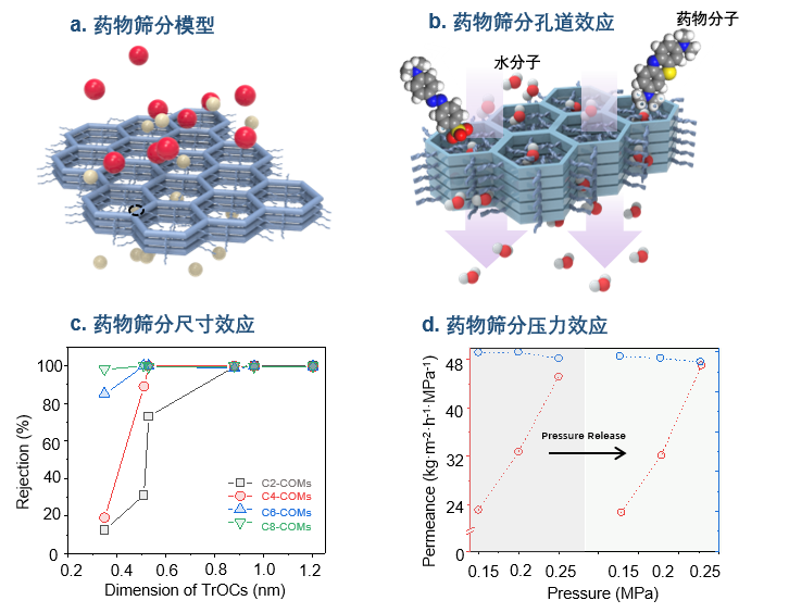 我国是世界上最大的药物生产国,拥有全球最大的药品市场。随着社会经济的发展,各类药物和个人护理品(PPCPs)生产和使用量也迅速增加,其中有效化学成分的年排放量在吨至万吨级,导致城市供水系统及水陆生态系统中不断检测出这类新兴有机物(TrOCs)。TrOCs对人类健康和水生环境造成了严重威胁,日益引起广泛关注。由于分子量小、毒性高、耐久性强、生物蓄积性高,TrOCs很难从水生环境中去除。膜技术被认为是一种高效滤除水体中高危有机物可持续的方法。然而,由于TrOCs尺寸小(纳米级)、迁移性高,传统商业化纳滤膜或反渗透膜无法使其在饮用水净化和地下水过滤等过程中去除。因此,迫切需要通过技术创新来去除这些痕量有机污染物。