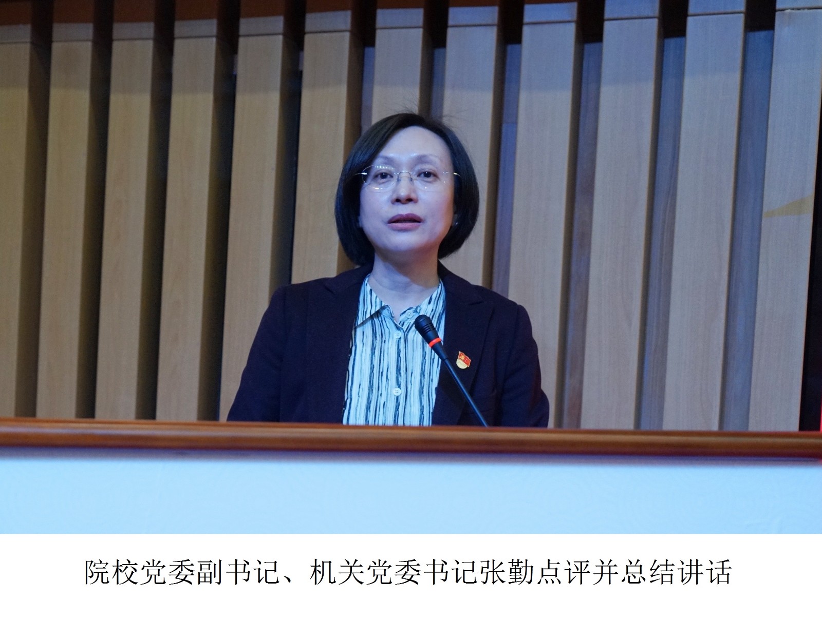 院校党委副书记、机关党委书记张勤对各党支部的工作进行逐一点评并总结讲话。张勤副书记首先对各党支部一年以来的工作情况给予了充分肯定,同时强调述职考核的重点是基层党建责任制,要求推动各级党组织实抓党建的工作责任,各级党支部书记履行职责,领导党员将“一岗双责”落到实处。2023年是全面贯彻落实党的二十大精神的开局之年,是院校基层组织建设的关键之年,各支部需要接续奋斗,全面发力。张勤副书记在总结讲话中对各党支部提出了五点建议:一是提高政治站位,全面落实从严管党、从严治党的政治责任,坚持把党的政治建设摆在首位,坚持党建工作和业务工作同部署、同落实、同检查,党建与业务深度融合,互促共进;二是加强理论学习,集中思想,凝聚力量,深入学习贯彻党的二十大精神,不断深化对习近平新时代中国特色社会主义思想精神实质的理解落实;三是夯实组织基础,基层党组织要聚焦党支部的建设,严格规范落实“三会一课”,结合支部特色开展丰富多彩的主题党日活动,提高基层党建工作的针对性、时效性,为院校加快推进国家医学科技创新体系核心基地和“双一流”建设提供坚实政治保证和组织保障;四是强化党建引领,注重选树身边先进典型,做到以点带面,辐射带动,提高基层党组织的战斗堡垒作用,充分发挥优秀党员的先锋模范作用;五是筑牢纪律防线,提醒各位党员紧盯隐形变异新动向,抓节点、正风纪、补短板、防反弹,持之以恒落实中央八项规定及其实施细则精神,营造风清气正的良好政治生态。