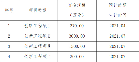 ac米兰官方网站2021年涉及创新工程结题审计的项目4个,具体信息如下: