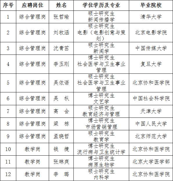 2020年度高校毕业生招聘拟聘用人员公示