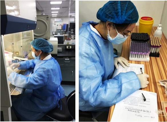 临床输血研究平台徐海霞:负责献血浆者和病人标本中的新冠病毒相关抗体和效价检测,为精准救治提供实验室数据。