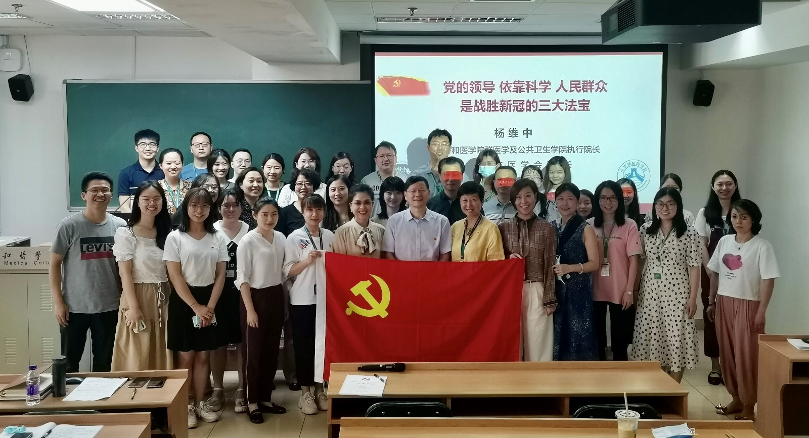 杨维中院长讲授了题为《党的领导 依靠科学 人民群众 是战胜新冠的三大法宝》的专题报告,总结了中国不断取得胜利的三大法宝,一是中国共产党的坚强领导,二是依靠科学技术,三是依靠人民群众。此外,杨维中院长还简要介绍了公共卫生的基本属性和价值,以及健康中国战略的基本情况。