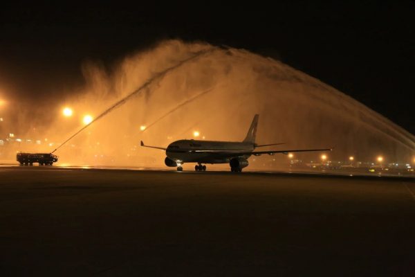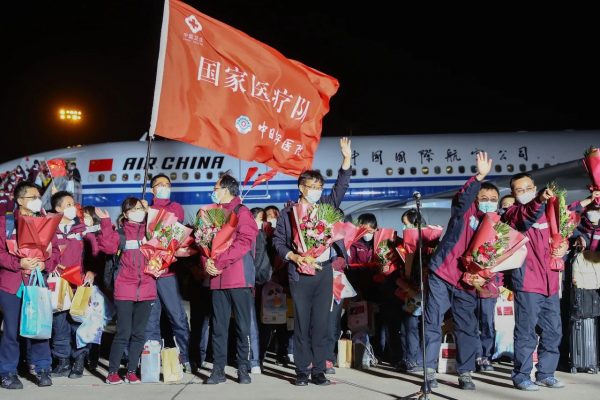 同机抵达的还有院校杨俊涛、王卓然两位援鄂队员和中日友好医院164位国家援鄂医疗队员。首都机场以民航界最高礼仪“过水门”的方式迎接白衣战士们回家。