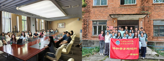 同学们在输血所的实践活动(左:交流环节,右:简阳旧址参观活动)