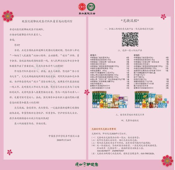 众志成城,抗击疫情,阜外医院工会始终助力于科学战“疫”,全力以赴做好保障工作,衷心守护阜外家人共同打赢这场疫情防控阻击战 !