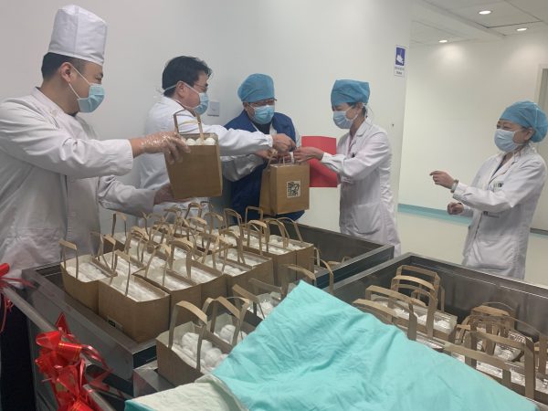 2月8日,在传统节日元宵节来临之际,中心、医院党委副书记、纪委书记李天庆同志及李志远副院长带领了党办、医务处、护理部、行政后勤处、工会负责同志走访慰问了值守在疫情防控和临床医疗救治战线上的临床科室的工作人员,为他们送上了暖心的“阜外家”汤圆,把关怀送到职工身边,把温暖送到职工的心坎里去,全力打赢这场疫情攻坚战。