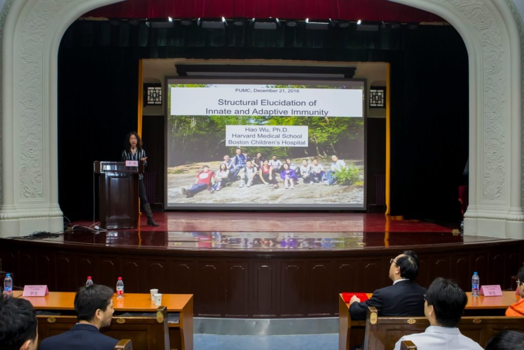 吴皓教授于2015年当选为美国国家科学院院士,是国际著名的结构免疫学家。她于1982年考入ac米兰官方网站主攻临床医学,1992年获得美国普渡大学的生物化学博士学位。2003年成为美国康奈尔大学威尔医学院的教授,2012年被聘为哈佛大学医学院生物化学及分子药理学教授,并担任波士顿儿童医院研究员。吴教授主要通过x-射线晶体衍射和电子显微镜方法,解析免疫受体尤其是天然免疫受体蛋白结构,进而阐明免疫受体信号转导的分子机理。