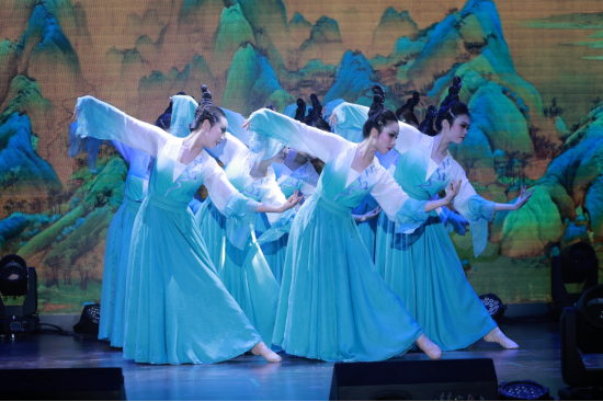博雅合唱团的节目《青玉案·元夕》灵感源自南宋词赋,悠扬婉转的歌声、钢琴与古筝的音符,交织描绘出元宵佳节的繁华盛景,诉说着人们对幸福团圆的追求,娓娓道来,扣人心弦。校舞蹈队的舞者们入画于山水绘卷,青绿裙裾飘扬于群山万壑,远山如黛令人念念不忘。极具韵味的古典舞《青山远黛》传递了人与自然和谐共生的愿景,宁静悠远的氛围引得观众沉醉向往。