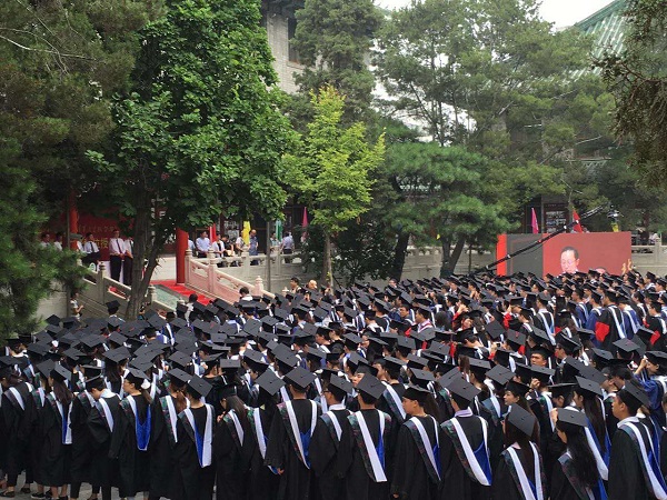 典礼在庄严的国歌声中拉开序幕。院校党委副书记、纪委书记姚龙山宣读了2016年度学位评定结果,今年我校授予585人博士学位、477人硕士学位、247人学士学位。院校领导向毕业的毕业生代表颁发了毕业证书。