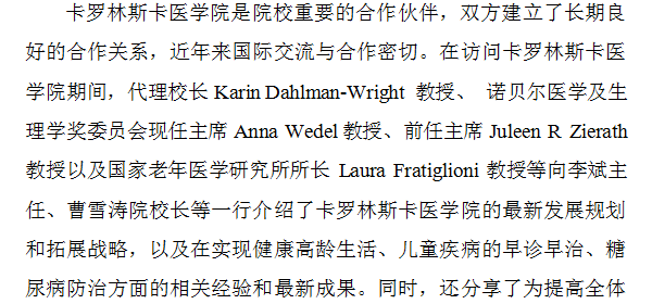 曹雪涛校长陪同李斌主任访问卡罗林斯卡医学院