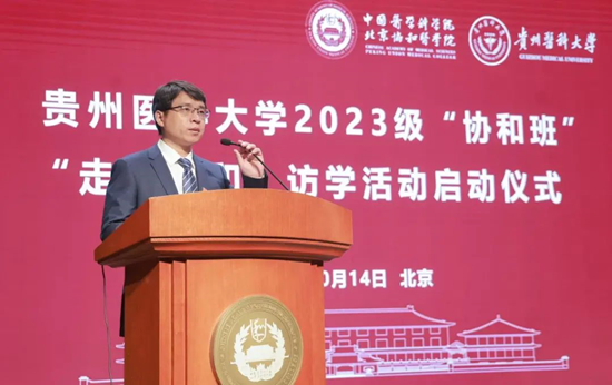 10月14日上午,贵州医科大学2023级“协和班”“走进协和”访学活动启动仪式在协和礼堂举行。院校党委副书记张勤,贵州医科大学党委委员、副校长齐晓岚出席启动仪式并致辞,贵州医科大学2023级“协和班”学生,两校相关处室、所院、学院老师共同参加启动仪式。