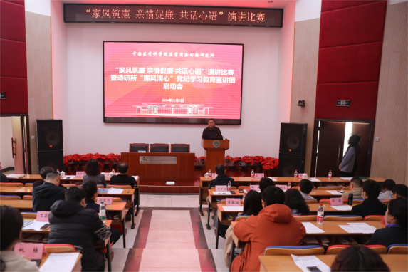 为进一步巩固深化党纪学习教育成果,加强研究所廉洁文化建设,11月5日,动研所举办“家风筑廉 亲情促廉 共话心语”演讲比赛暨动研所“廉风清心”党纪学习教育宣讲团启动会,邀请院校纪委“廉风清心”党纪学习教育宣讲团宣讲。