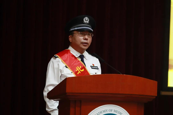 院校党委书记姚建红在致辞中向报告团成员的到来表示热烈欢迎,他指出,学习榜样精神,对于推动学校高质量发展,加快医学科技创新体系的核心基地和双一流建设,具有十分重要的意义。希望全校师生员工向时代楷模、北京榜样学习,从他们的事迹中汲取强大精神力量,切实转化为埋头苦干、奋力拼搏的自觉行动,在日常学习、教学、科研、管理等平凡的工作中,做出不平凡的业绩,以优异成绩迎接中国共产党成立100周年。