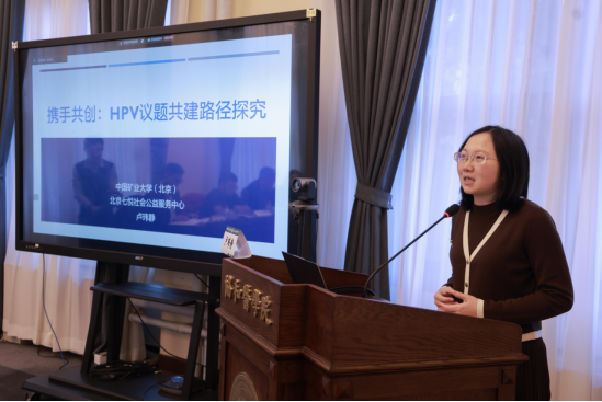 公益界代表、北京七悦社会服务中心主任卢玮静老师围绕“共建慈善的探索实践”作主题发言,分享了在宫颈癌防治公益项目中整合各方资源、促进跨领域合作的成功经验。“希望在协和+蓝丝带的平台上,聚合公益的力量,发挥更大的价值。”