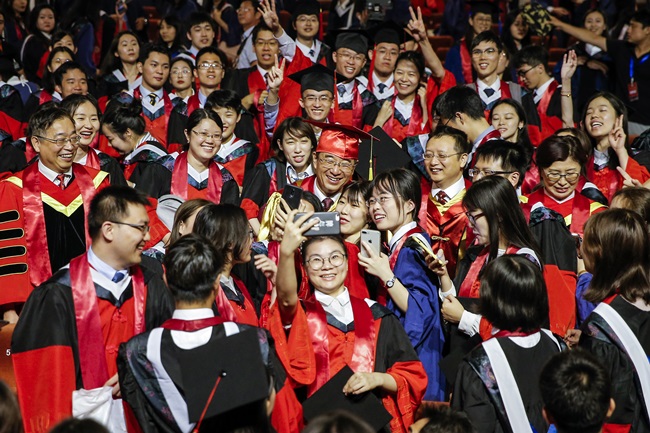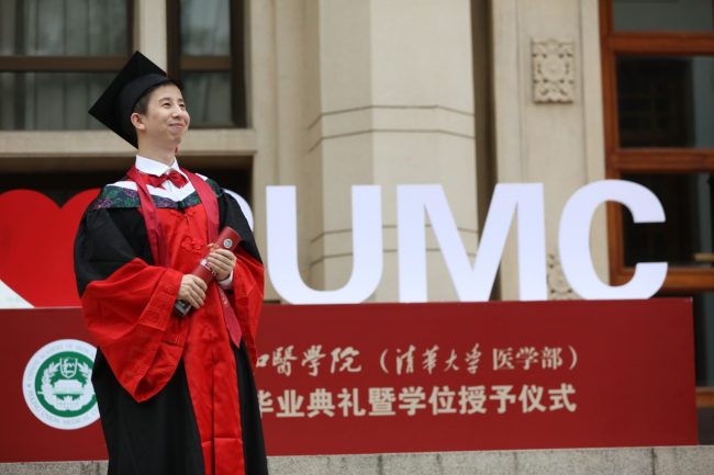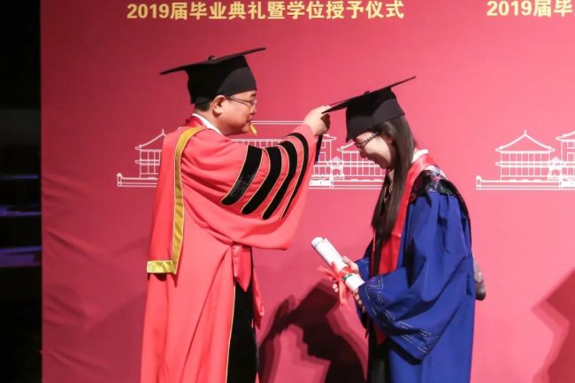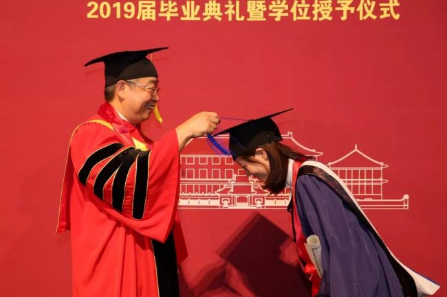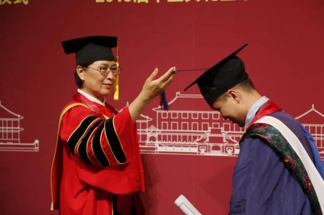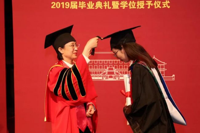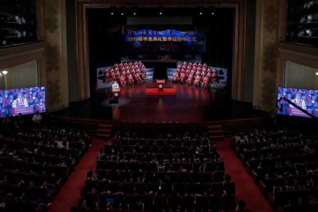 雨燕合唱团深情合唱校歌《协和颂》,以大家耳熟能详的旋律和歌声,表达了医者的责任担当和毕业生对母校的眷恋不舍。在悠扬的歌声中,2019届优秀毕业生手持象征学业表彰的“文海奖牌”,身着学位服井然有序地步入会场,重现百年协和毕业典礼的经典场景。