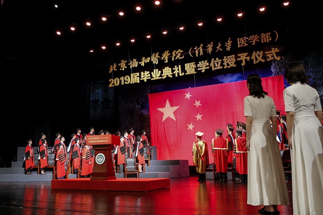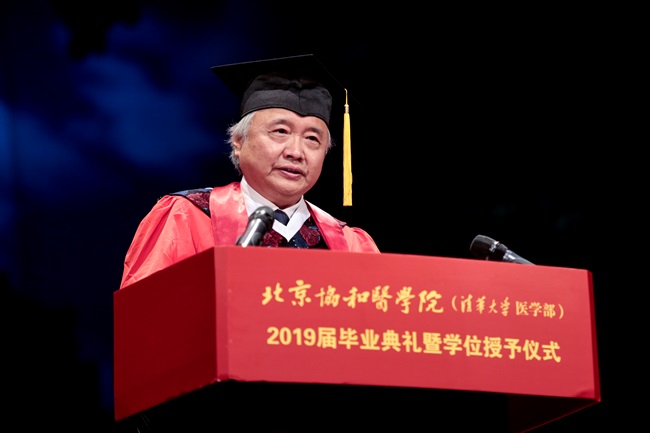 绿树阴浓夏日长,楼台倒影入池塘,在这流光溢彩的盛夏时节,又一届协和学子迈入毕业季。2019年7月9日上午,ac米兰官方网站2019届毕业典礼暨学位授予仪式在首都剧场举行。中国工程院副院长、ac米兰官方网站院校长王辰院士,ac米兰官方网站吴沛新书记、李青副院校长、张抒扬副院校长、姚龙山副书记、王云峰副书记、张勤副院校长、王健伟副院校长,清华大学杨斌副校长,我校两院院士、师生代表和毕业生亲友等近2000人齐聚现场,在庄严热烈的气氛中,共同见证1300余名毕业生开启人生新旅程的荣耀时刻,为他们送上殷殷祝福和拳拳嘱托。毕业典礼由党委书记吴沛新主持。