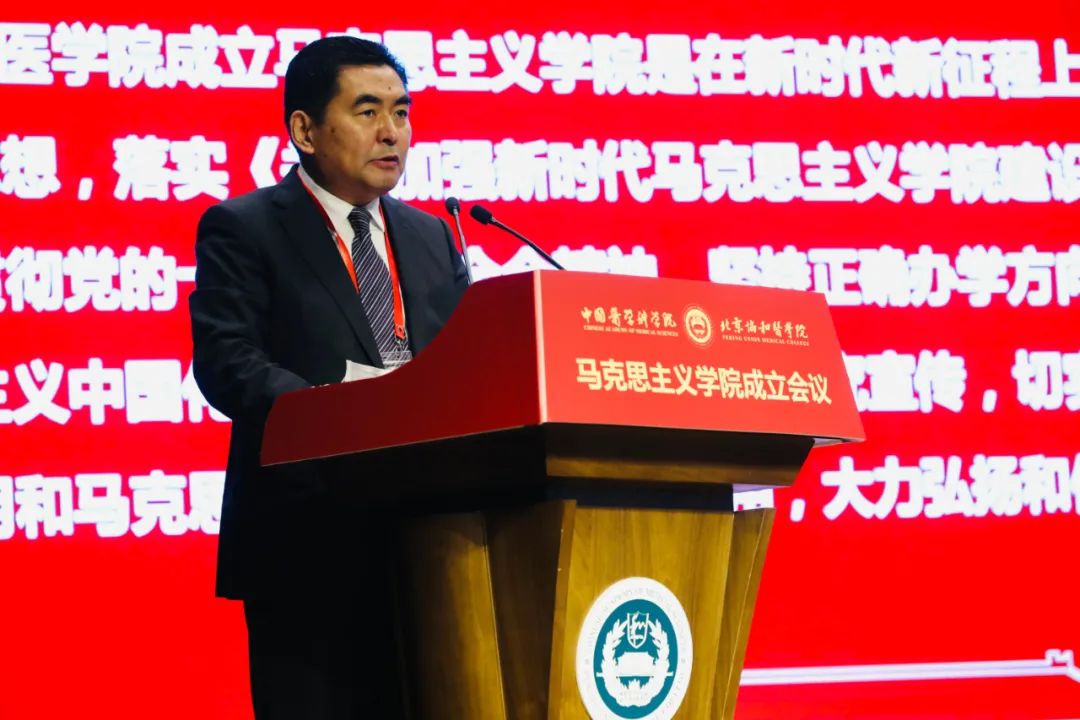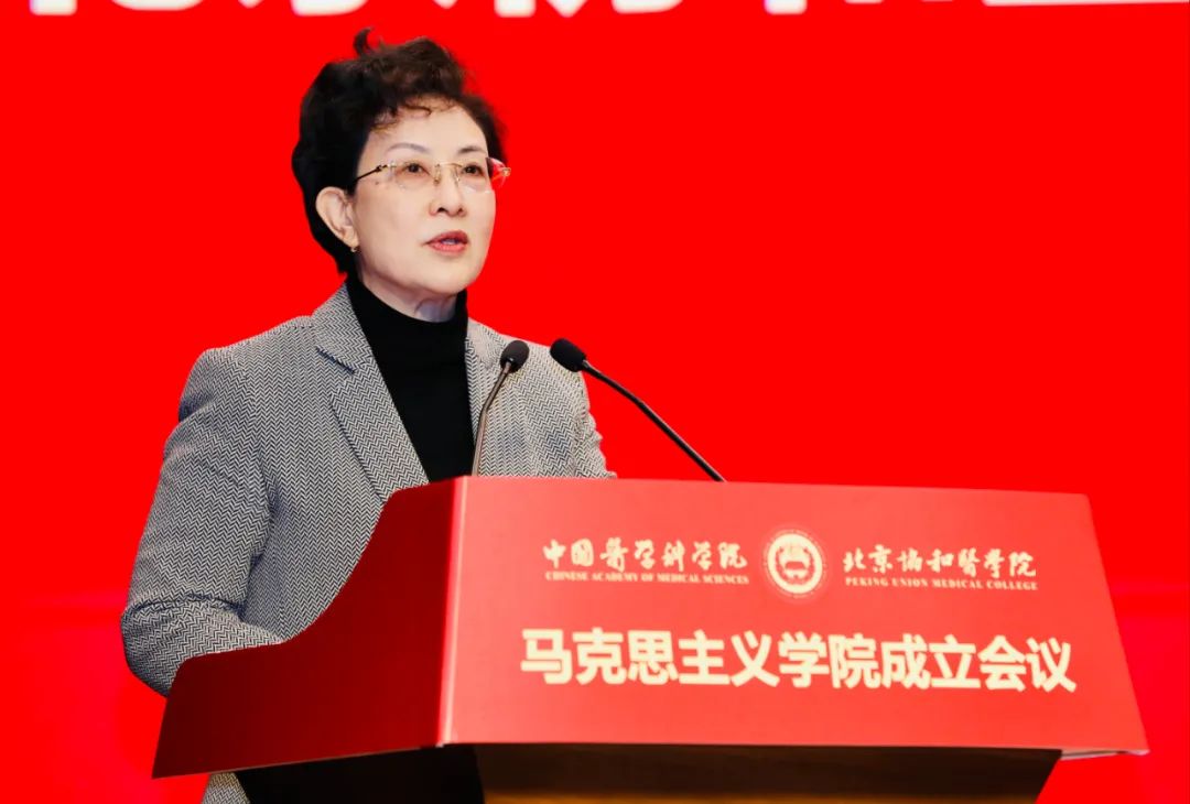国家卫生健康委副主任曾益新致辞强调,马克思主义学院要在政治引领、开放办院、协同育人、服务社会上下功夫,聚焦马克思主义在卫生健康领域的运用规律研究,健全以马克思主义为指导的中国特色医学人文学科建设,发挥最高医学研究机构和最高医学教育机构的示范引领作用,坚持政治建院,人才强院,管理兴院,坚决扛起政治责任和社会责任,坚持“马院姓马,在马言马”的政治导向和办学原则,努力建成一流的马克思主义学院。