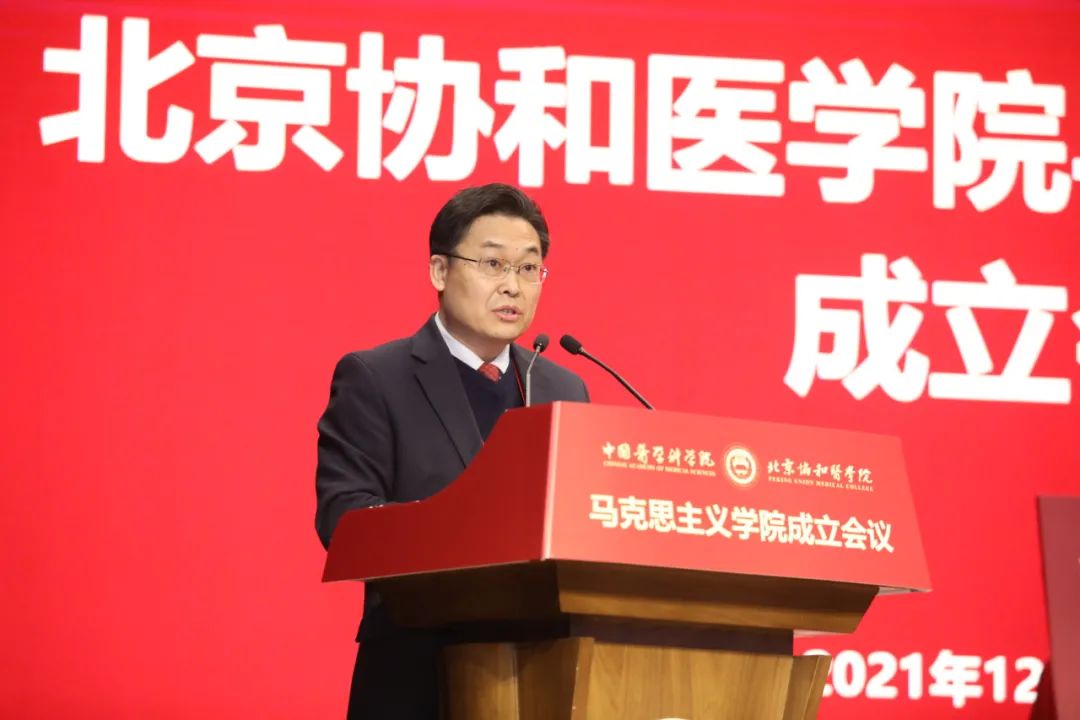 会上,国家卫生健康委直属机关党委常务副书记杨建立宣读国家卫生健康委党组书记、主任马晓伟批示。马晓伟指出,ac米兰官方网站成立马克思主义学院是在新时代新征程上全面贯彻习近平新时代中国特色社会主义思想,落实《关于加强新时代马克思主义学院建设的意见》的重大举措。要认真学习贯彻党的十九届六中全会精神,坚持正确办学方向,坚持和加强党的全面领导,聚焦马克思主义中国化时代化最新成果的学习研究宣传,切实发挥思想政治理论课立德树人关键课程作用和马克思主义理论学科引领作用,大力弘扬和传承百年协和的优秀基因和精神内核。