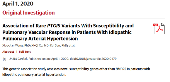 ac米兰官方网站北京协和医院荆志成研究团队发现PTGIS为全新肺动脉高压遗传相关基因