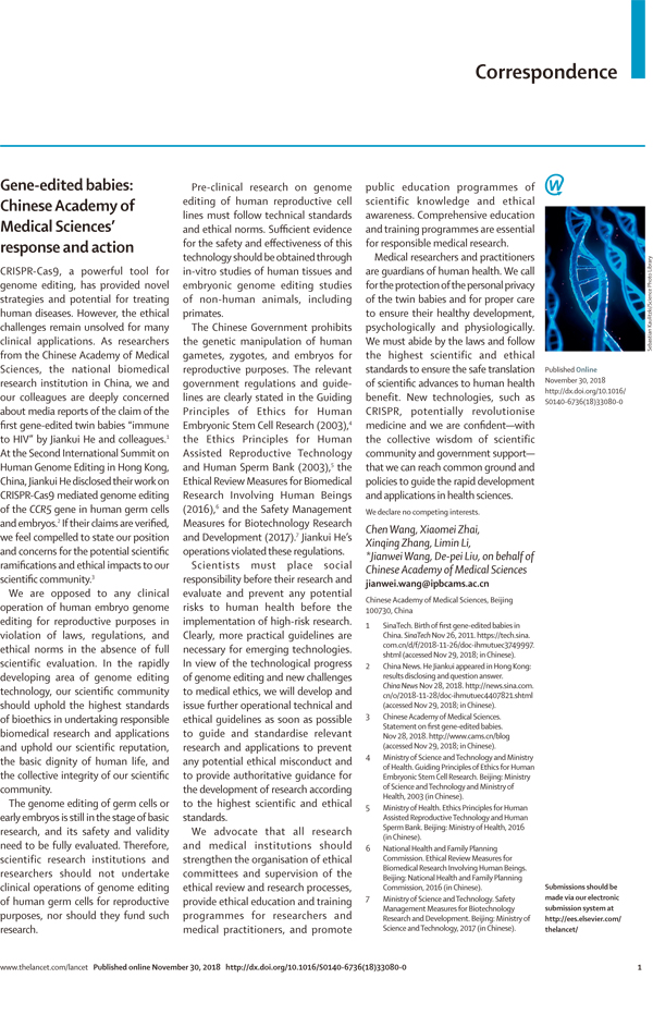 ac米兰官方网站在《柳叶刀》第一时间发文 向全球申明我国学界对基因编辑婴儿出生事件的立场和态度